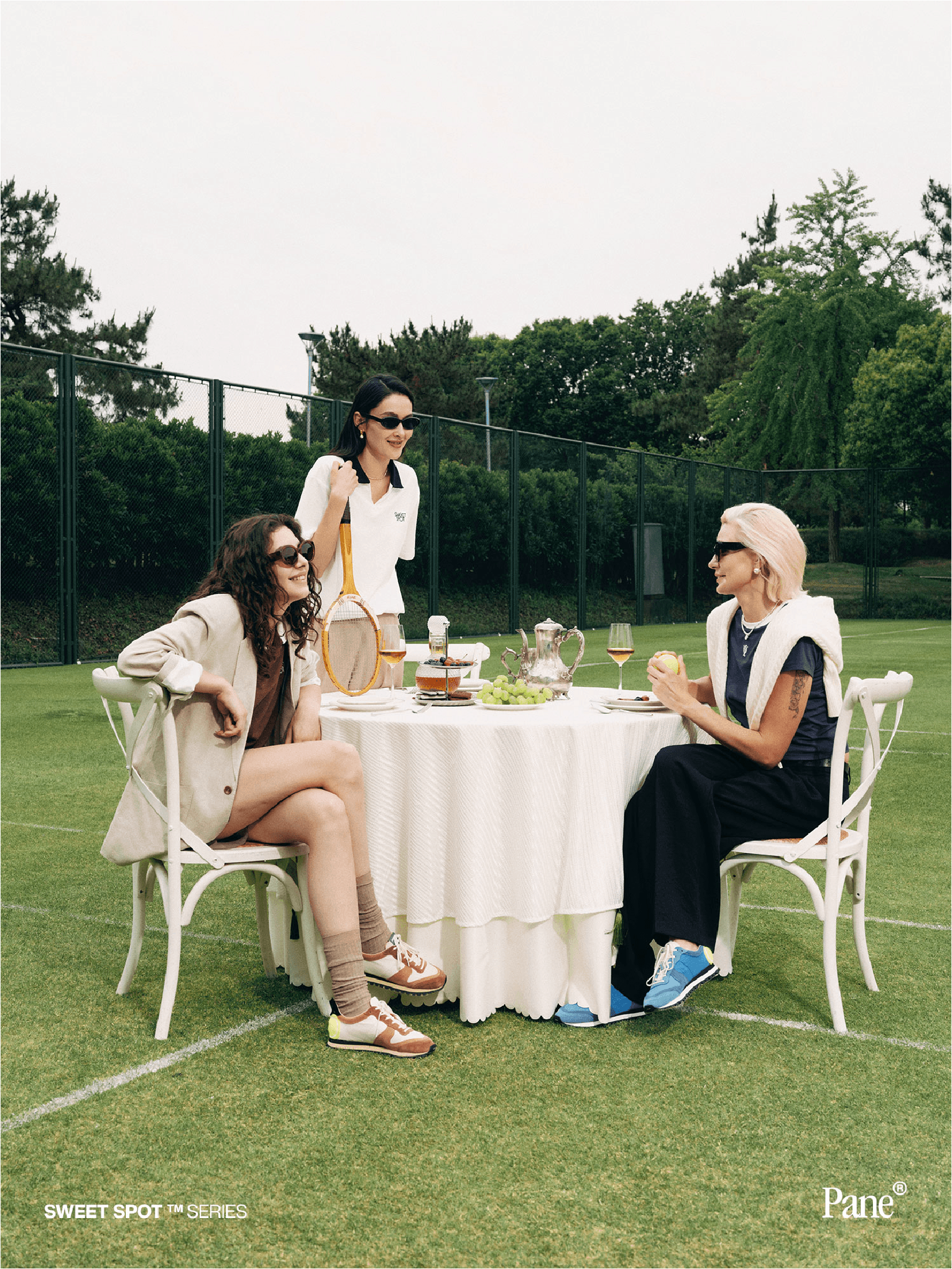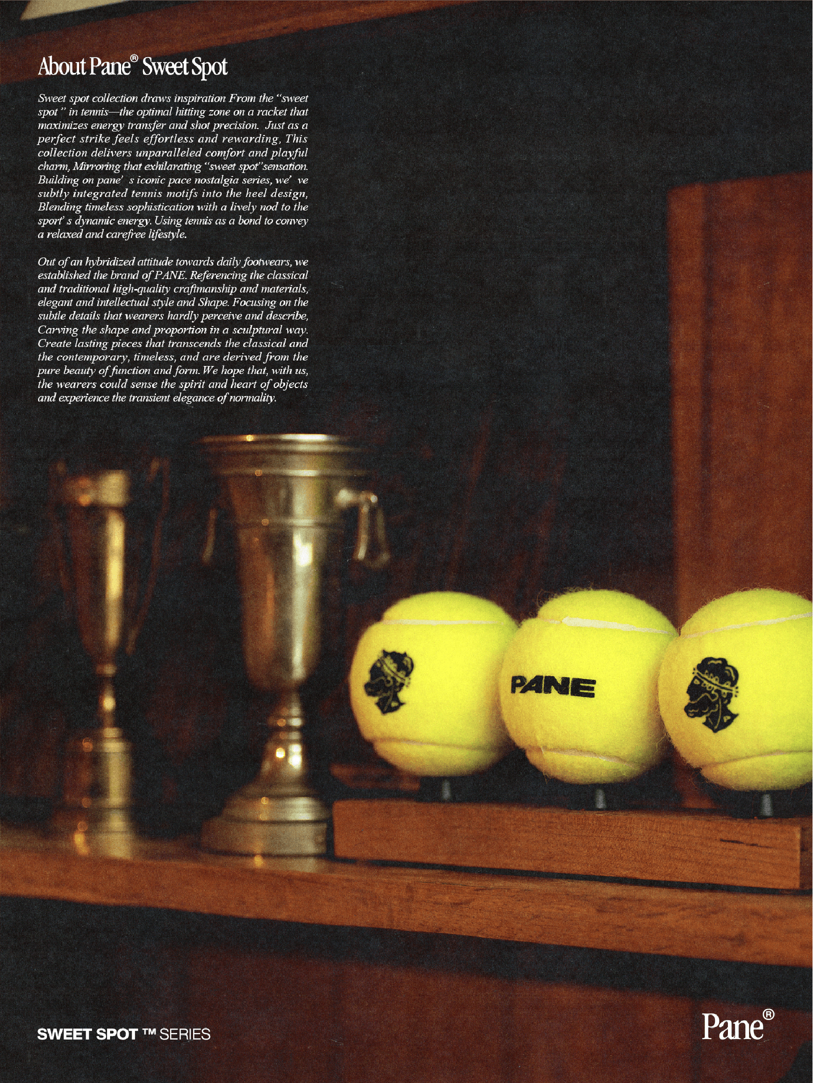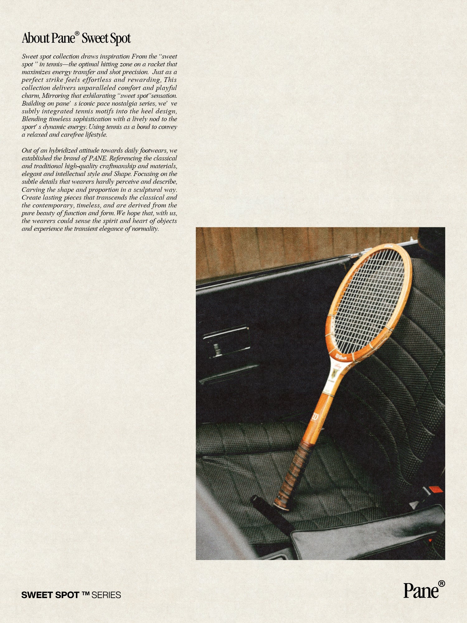 Building on PANE’s iconic PACE NOSTALGIA series, we’ve subtly integrated tennis motifs into the heel design, blending timeless sophistication with a lively nod to the sport’s dynamic energy.Using tennis as a bond to convey a relaxed and carefree lifestyle.
