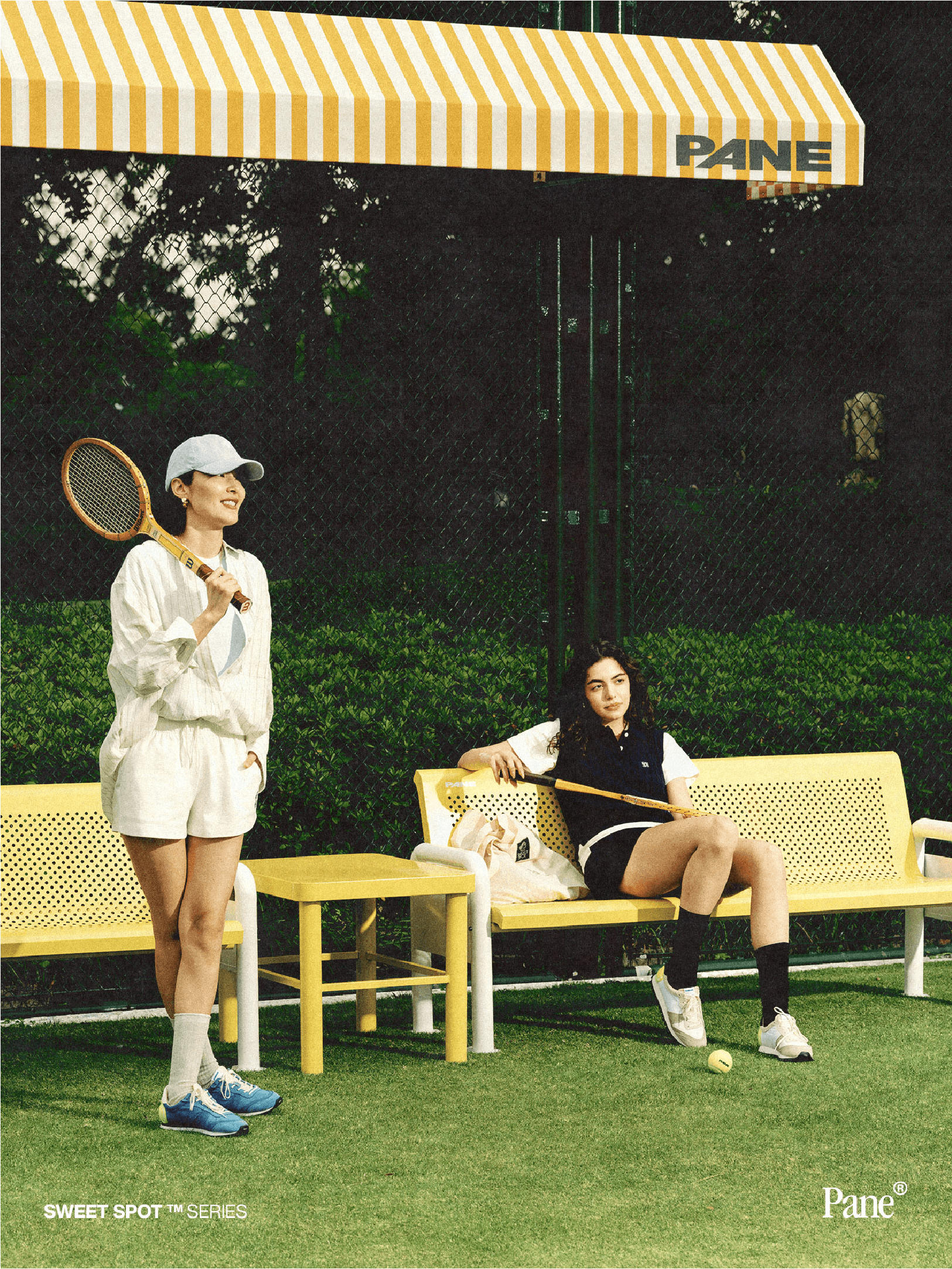 Sweet Spot collection draws inspiration from the 'sweet spot' in tennis—the optimal hitting zone on a racket that maximizes energy transfer and shot precision. Just as a perfect strike feels effortless and rewarding, this collection delivers unparalleled comfort and playful charm, mirroring that exhilarating 'sweet spot' sensation.