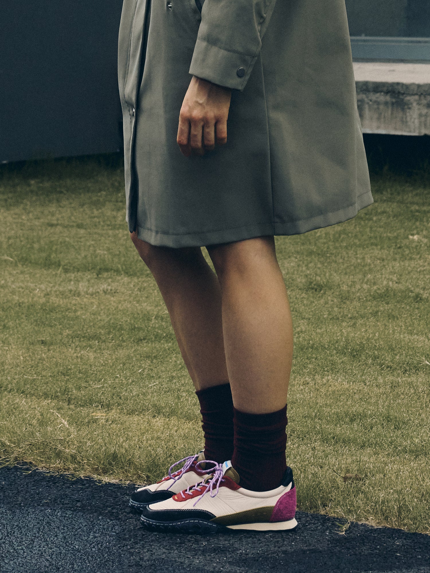 Nylon, suede, oiled suede, long suede, and chrome-free leather upper with pigskin lining for breathable comfort. Finished with a leather-faced insole, cork midsole, and lightweight rubber outsole. Comes with two lace options for versatile styling.