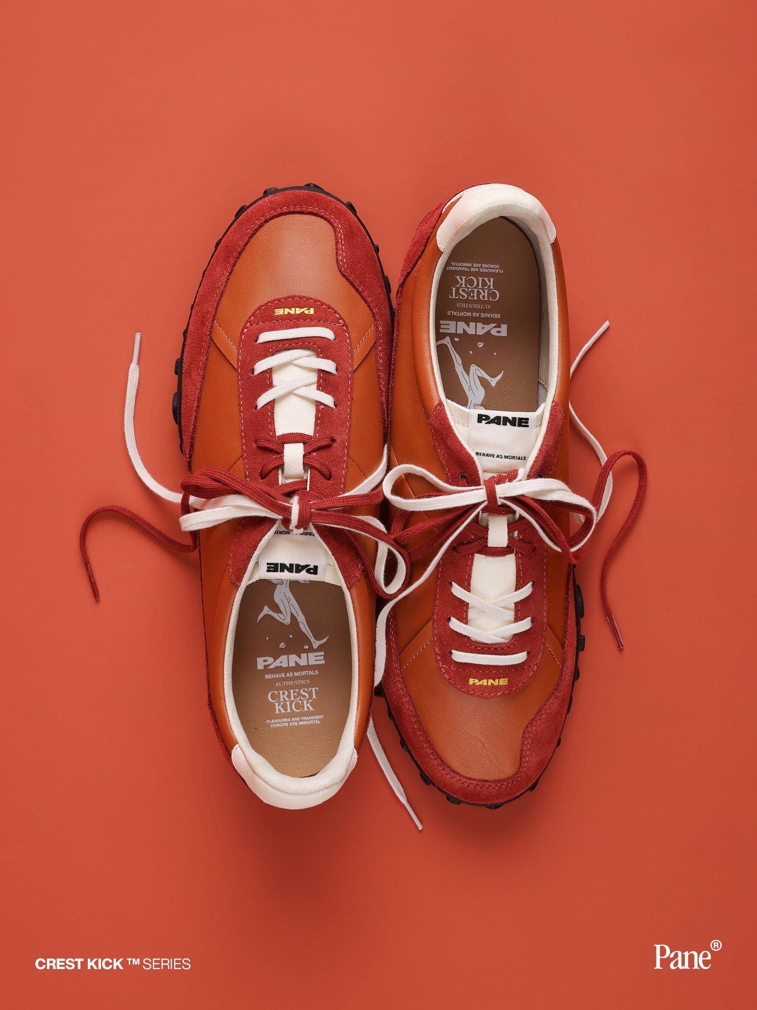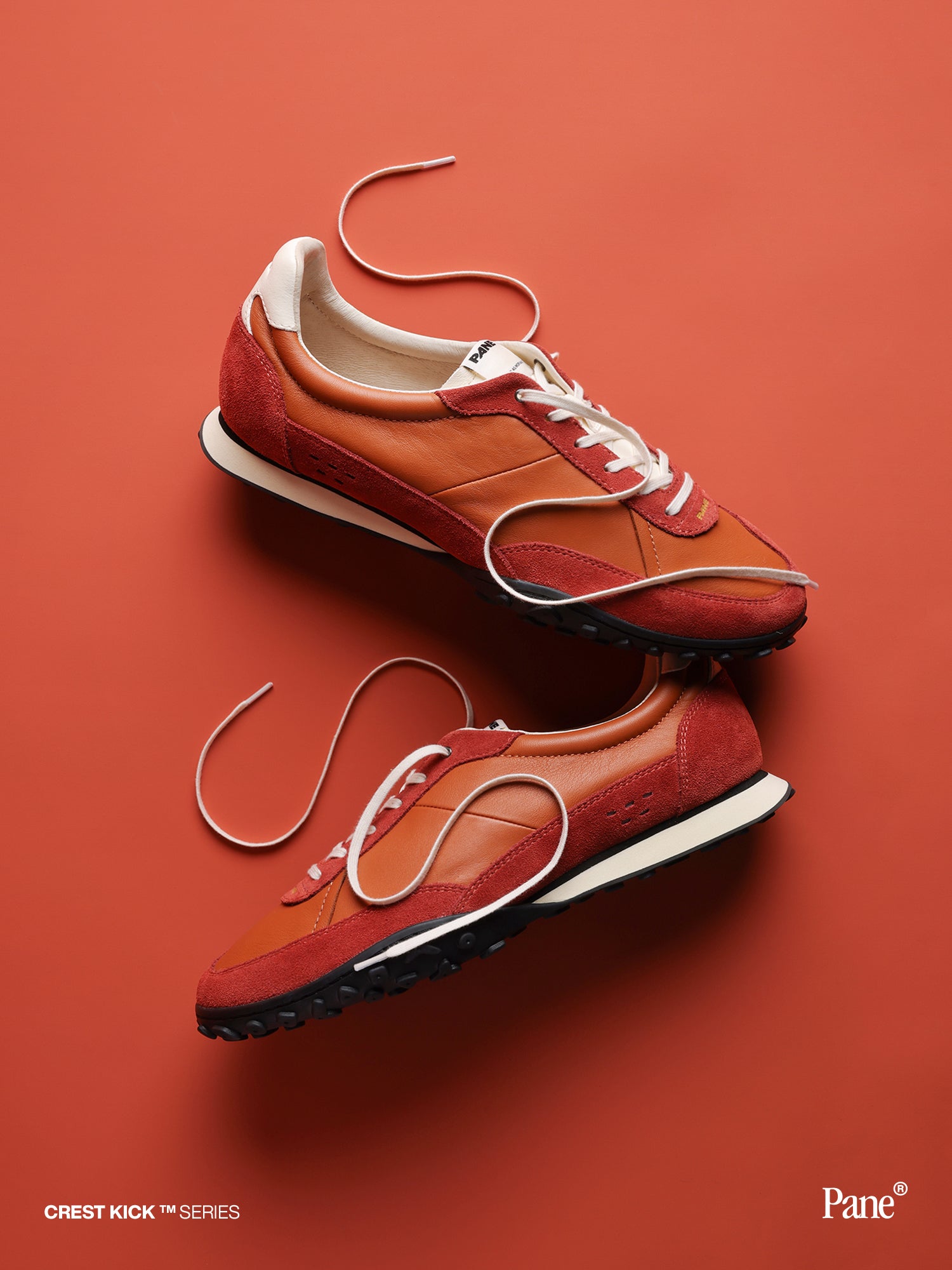 The rocky ridge is the rugged spine of the earth, and the orange-red is the sunset sunken to the valley floor.Featuring a cattle hide and cattle split leather upper, it is finished with a leather-faced insole, cork midsole, and lightweight rubber outsole. Includes two lace options—off-white cotton (4mm), and Flat cotton laces with reinforced eyestays (4mm).