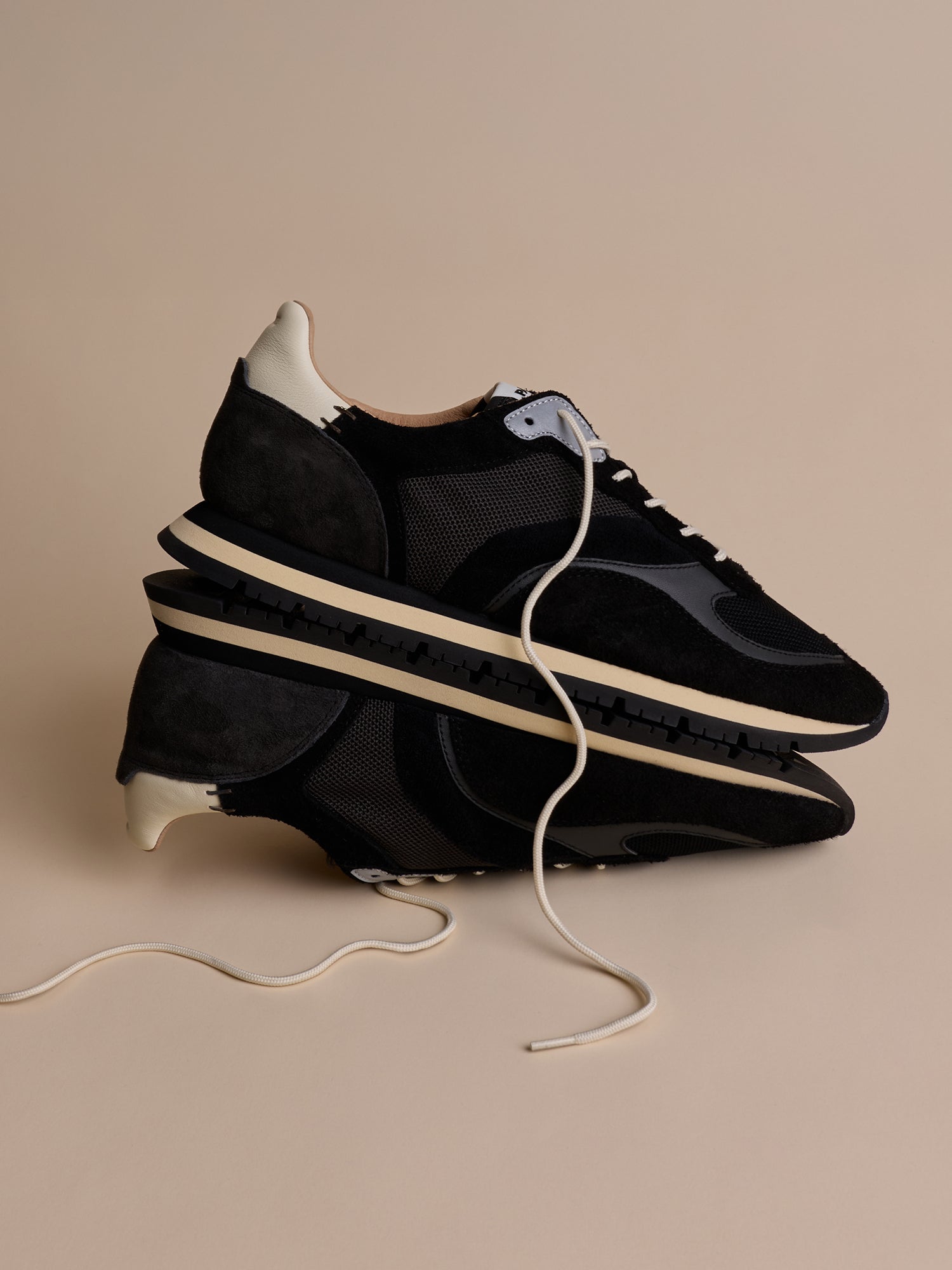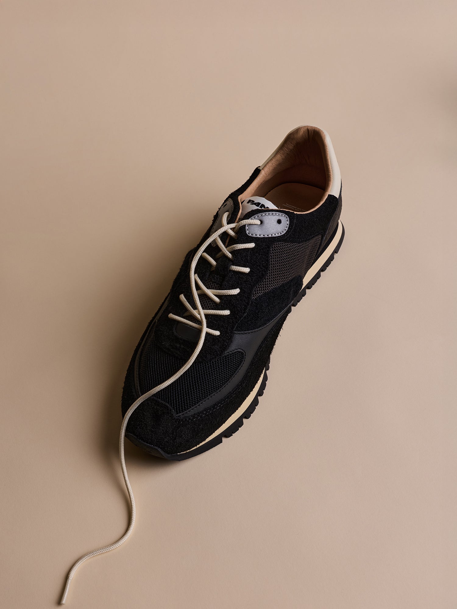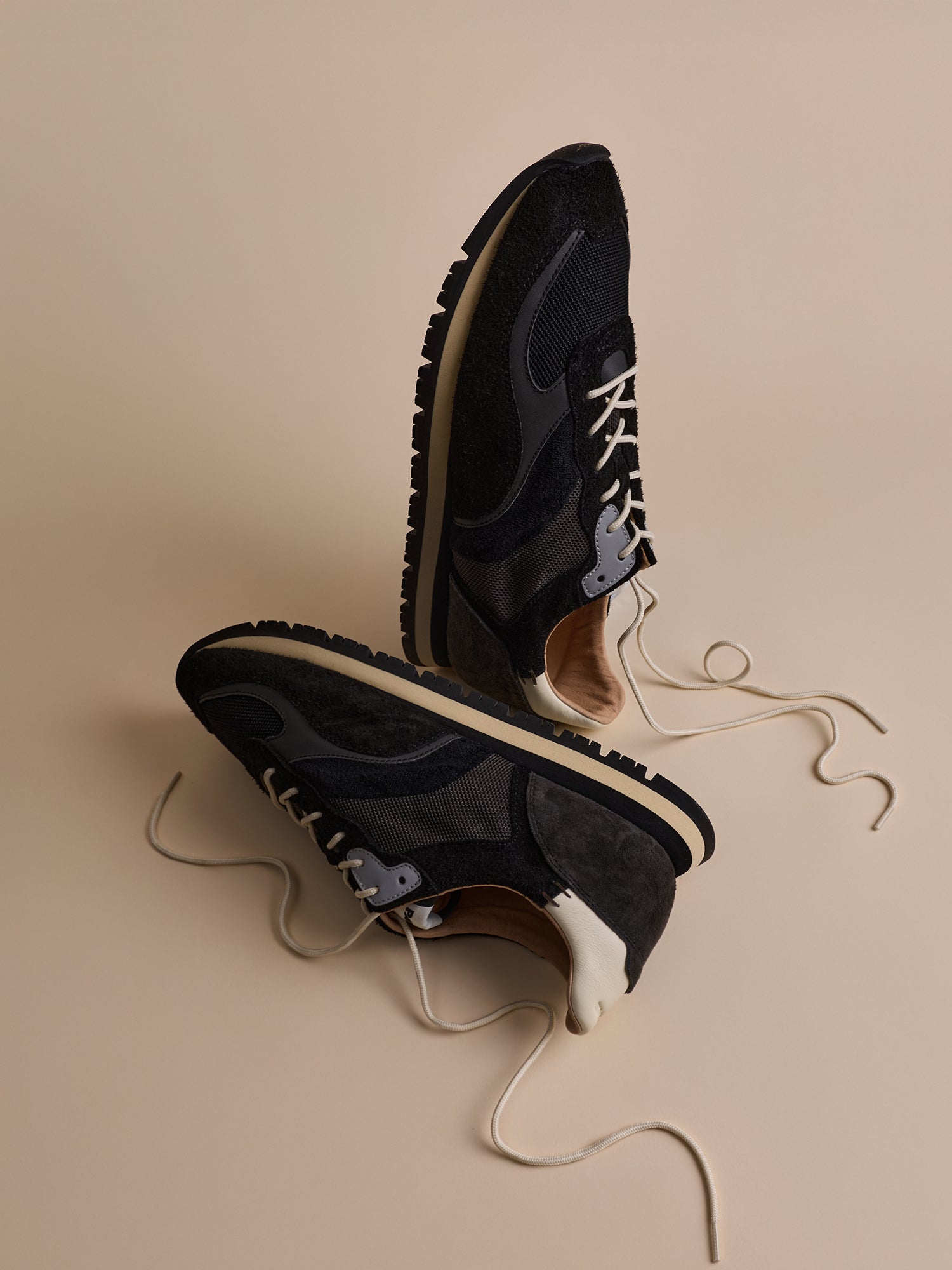 Washed wax-textured leather, suede, mesh, and toweling upper with pigskin lining. Finished with a 5mm Ortholite insole for comfort. Comes with two lace options for versatile styling.