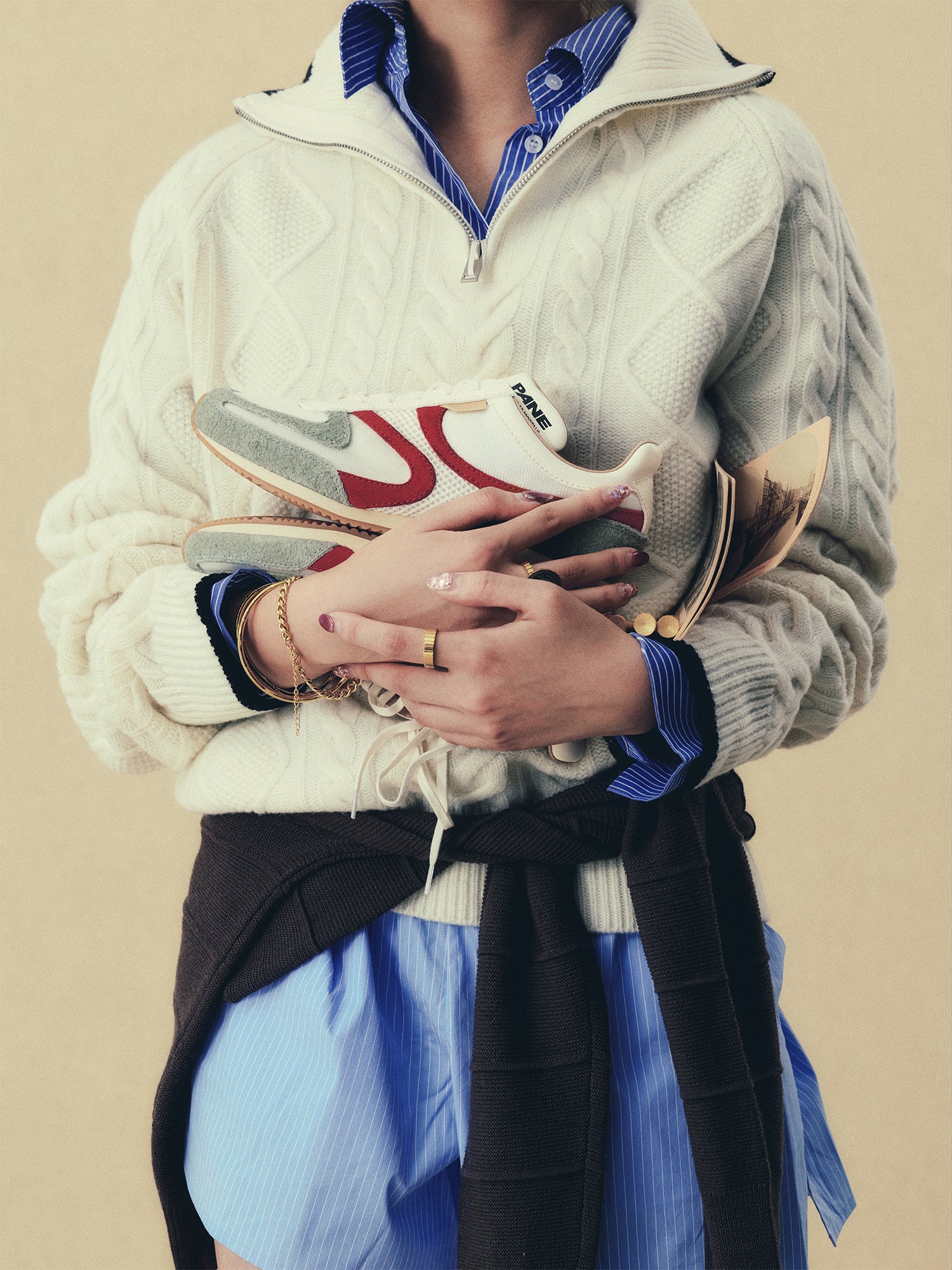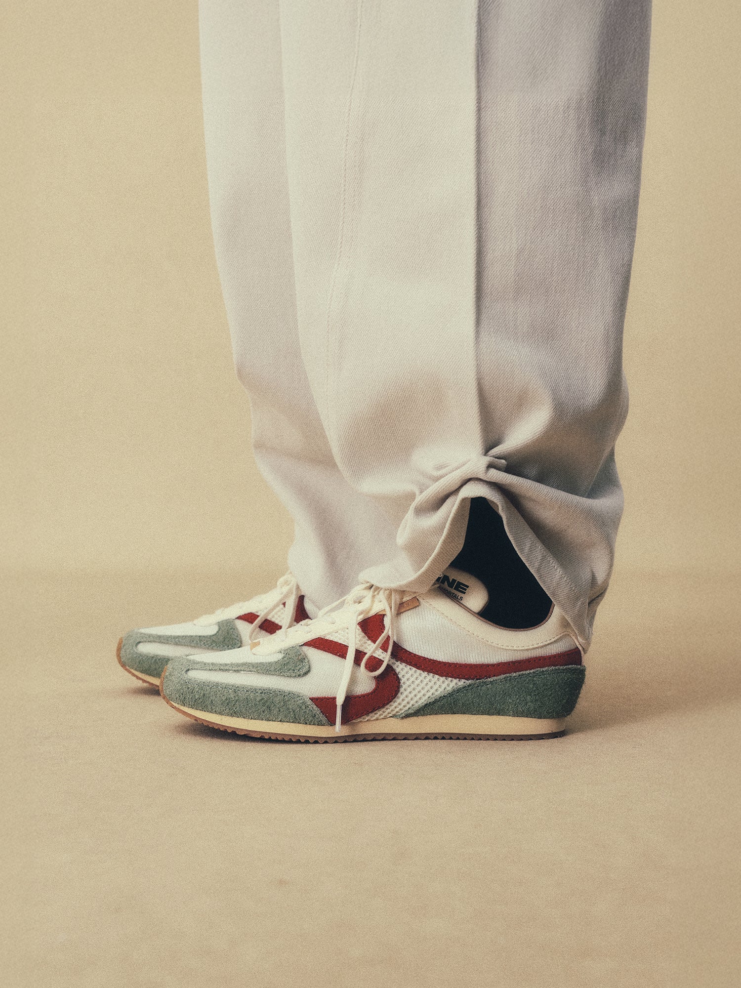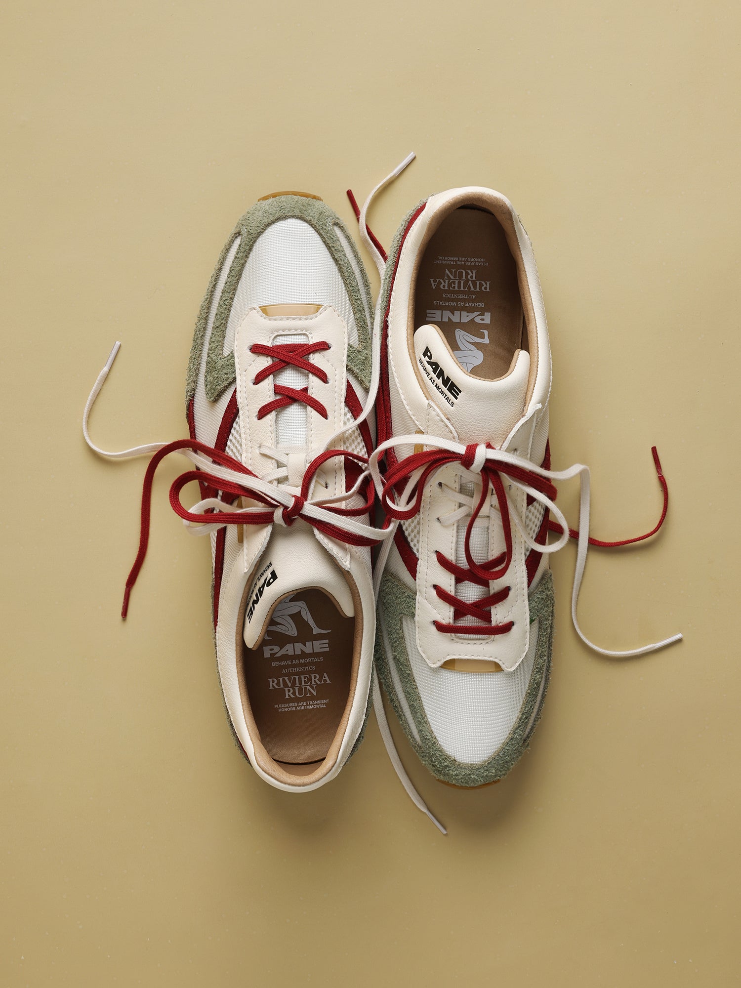 Scarlet lingers and creeps through white and green hues,each stride unfolds a life of wild tenderness.Lightweight low-profile design offers ease and comfort, with an elongated, arch-tapered silhouette for an elegant profile.Includes two lace options—off-white cotton (4mm), and red suede cotton flat lace(4mm).
