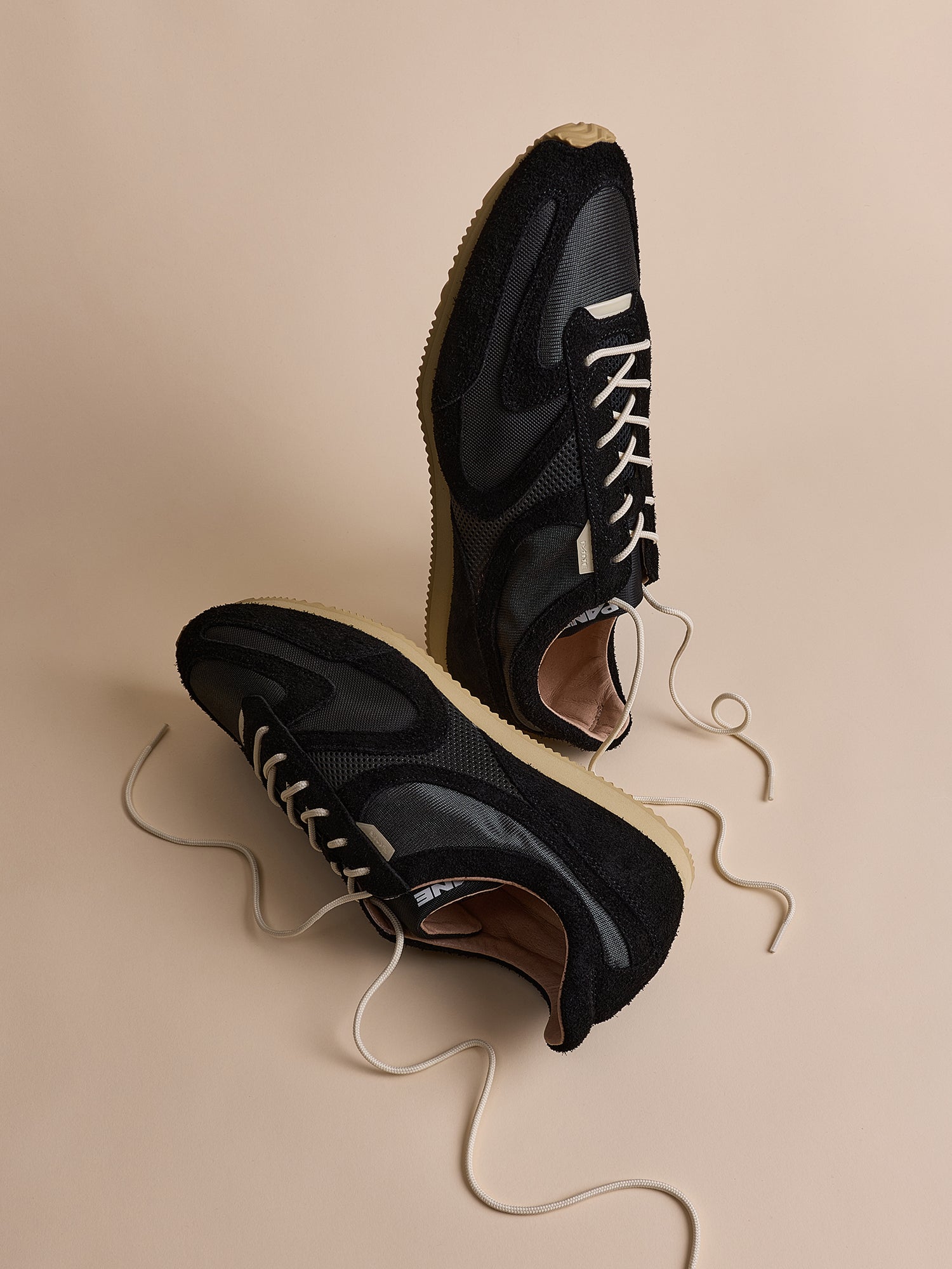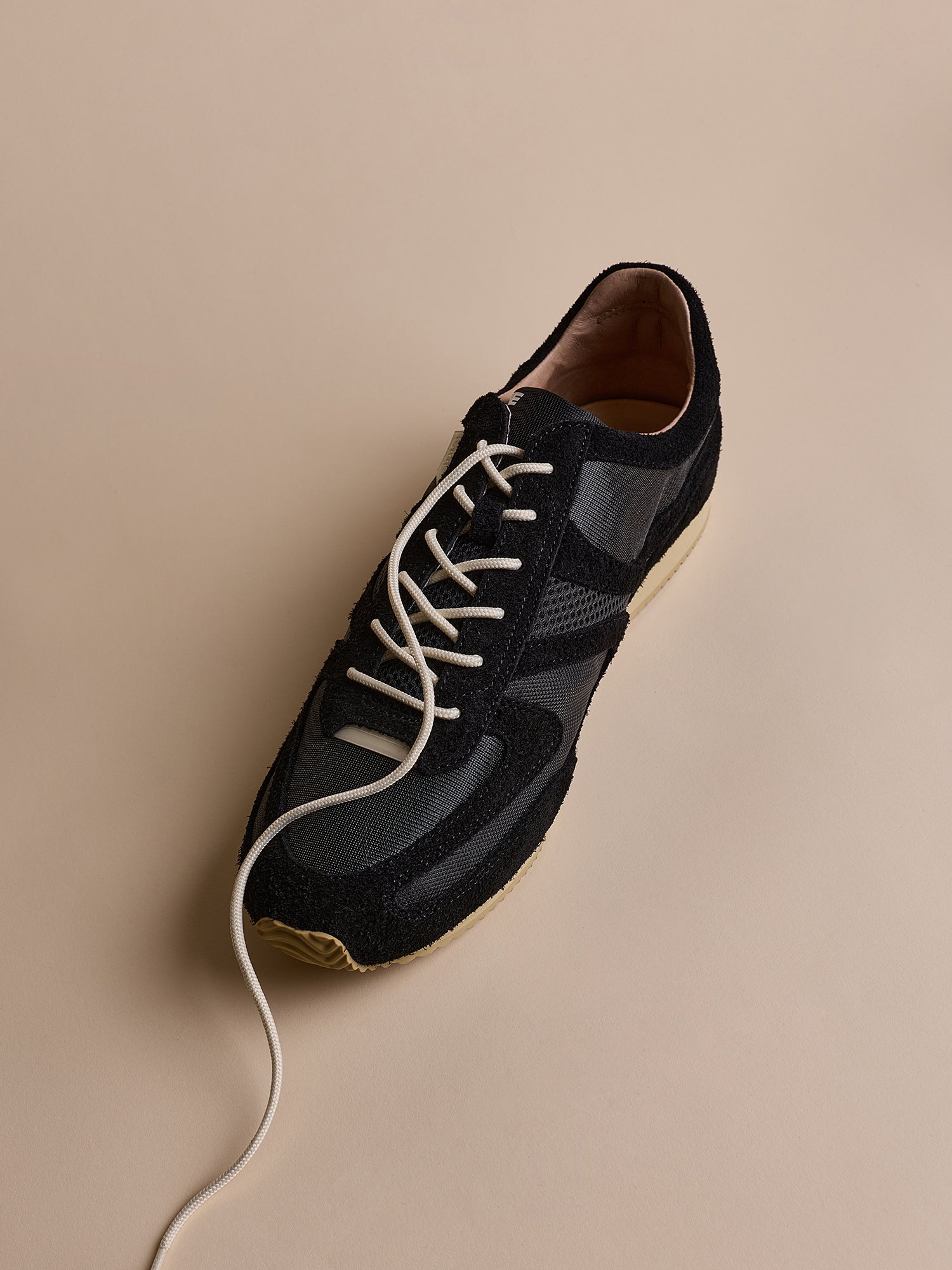 Long suede, mesh, and nylon upper with pigskin lining for breathable comfort. Finished with a 5mm Ortholite insole and two lace options for versatile styling.