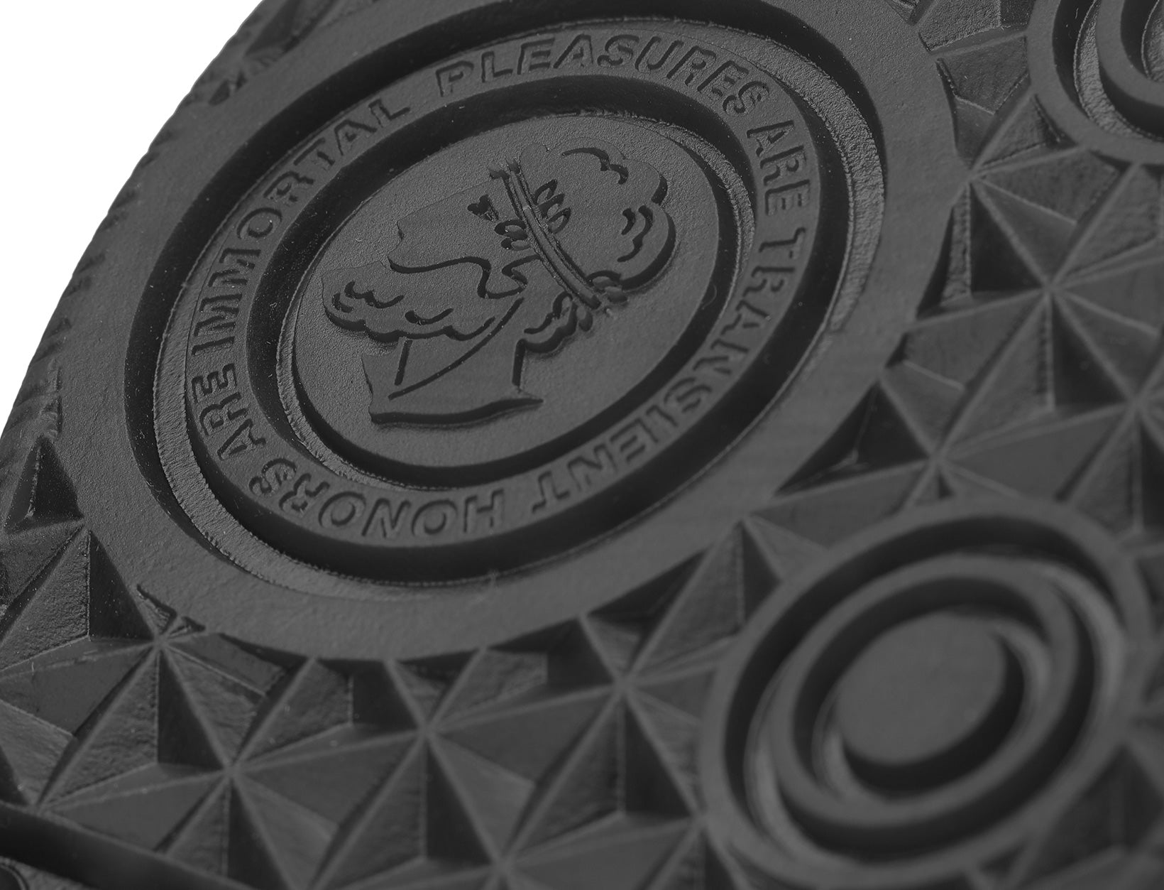 Washed wax-textured leather and suede upper, combined with a cork midsole system featuring moisture-absorbing properties. Accented with a foil-stamped heel detail, set on a lightweight, slip-resistant rubber outsole for everyday versatility.