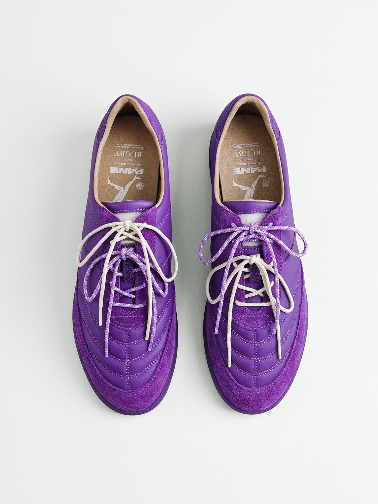 Suede and Nappa leather upper, combined with a cork midsole system featuring moisture-absorbing properties. Includes two lace options—original off-white nylon(3mm), and tonal round laces(3mm).