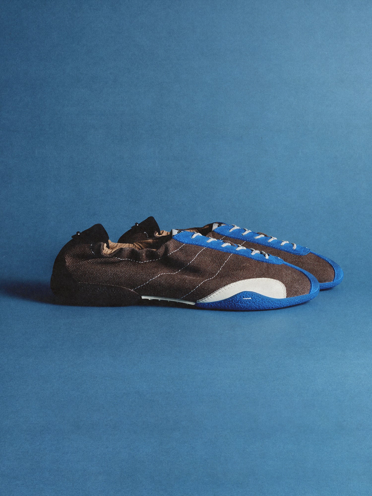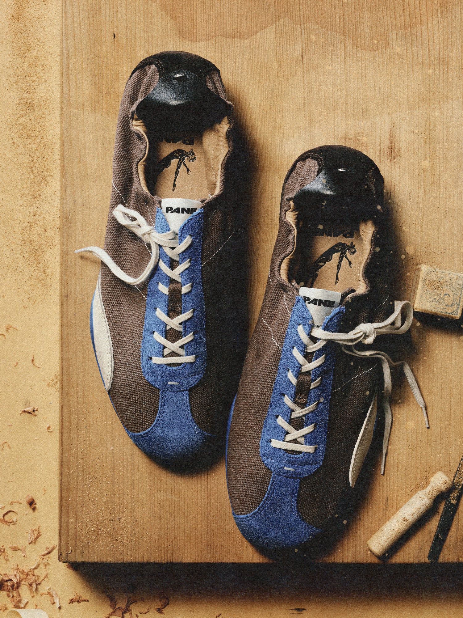 Solid brown carries the spark of bright blue, leading back to the original state before inspiration was ever sketched.