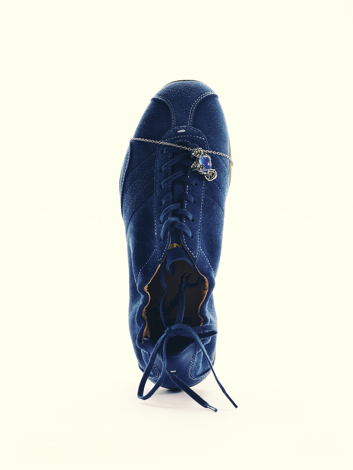 Crafted in premium cattle split leather, the upper delivers a smooth, refined texture with a quiet sense of luxury. Each pair features a leather-lined insole, 5mm Ortholite cushioning, and a cork midsole to ensure superior comfort. The updated two-piece lightweight rubber outsole offers increased softness and flexibility, contouring naturally to the foot’s curve. With its elongated form and gracefully sculpted arch, the silhouette embodies modern elegance. Every pair comes with two sets of laces, allowing for versatile styling with ease.