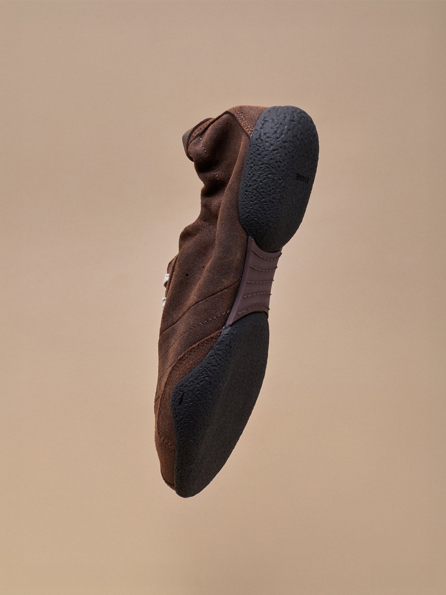 Crafted in premium cattle split leather, the upper delivers a smooth, refined texture with a quiet sense of luxury. Each pair features a leather-lined insole, 5mm Ortholite cushioning, and a cork midsole to ensure superior comfort. The updated two-piece lightweight rubber outsole offers increased softness and flexibility, contouring naturally to the foot’s curve. With its elongated form and gracefully sculpted arch, the silhouette embodies modern elegance. Every pair comes with two sets of laces, allowing for versatile styling with ease.