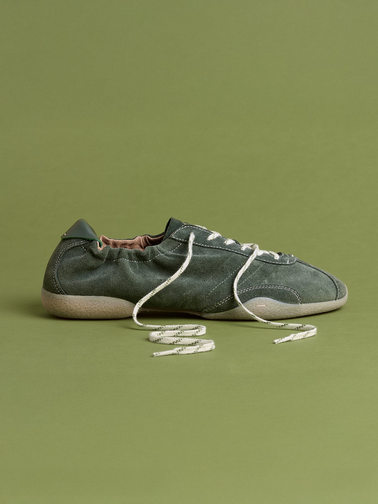 At the collar, the “Pouching” construction introduces a discreet elastic design, creating a gentle, enveloping fit. Delicate gathers add a touch of understated nonchalance, enhancing the shoe’s sophisticated yet relaxed aesthetic.